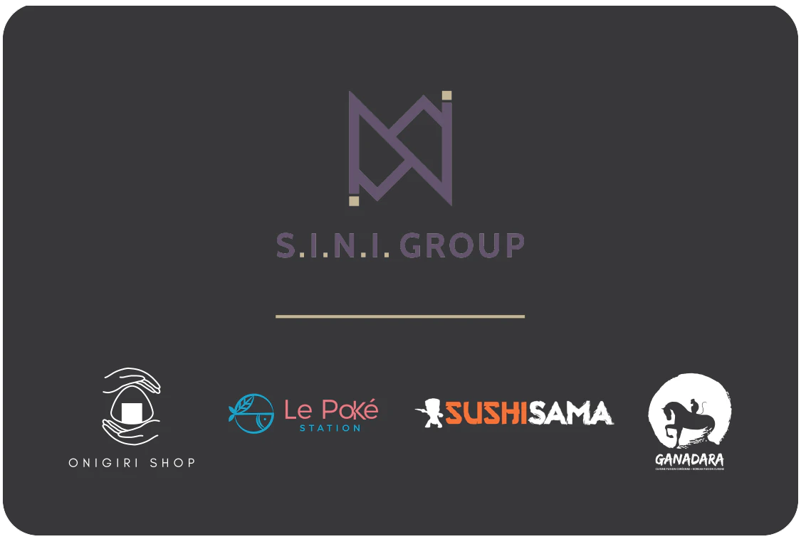 One gift card, endless flavor! Use it at SUSHI SAMA, Le Poke Station, Onigiri Shop, and Ganadara — all part of the Group S.I.N.I. family.